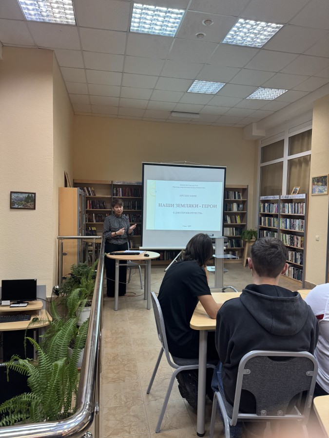 4 декабря в литературной гостиной библиотеки Омского ГАУ прошел патриотический час «Наши земляки – герои». В нем приняли участие студенты группы Б-11АХИМ факультета агрохимии, почвоведения, экологии, природообустройства и водопользования.