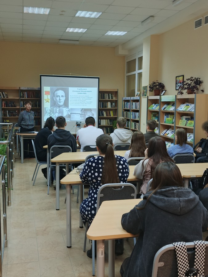 В основной части встречи прозвучал рассказ о героизме известных уроженцев нашего города и области. Вспомнили имена таких героев, как Карбышев Д. М., Ильичев П. И., Кузнецов Н. В., Долина М. И., Цуканова М. Н., которые встали на защиту Родины во время Великой Отечественной войны и с честью и отвагой выполняли свой воинский долг.